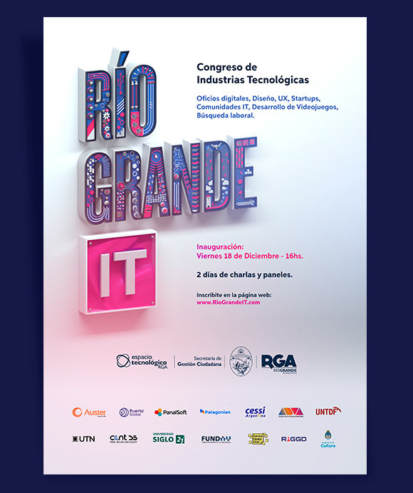 Río Grande IT es un congreso cuyo objetivo es presentar las distintas ramas de la industria tecnológica a través de charlas y paneles dictados por profesionales activos del sector, con el fin de inspirar a nuevos participantes e impulsar el desarrollo del ecosistema IT local.
